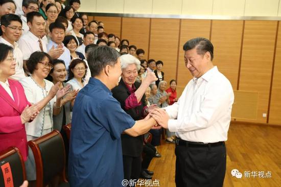 习近平说,看到各位老师精神这么好,我心里特别高兴。当年老师对我们要求十分严厉,现在回想起来,终生受益。一位老师对总书记说:“您给人民带来了幸福。”习近平答道:“是老师培养了我们。”