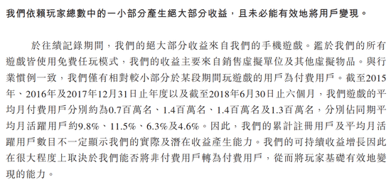 第二层是平均月付费用户的持续疲软,甚至是下降。2018年上半年禅游科技的平均月付费用户为1.3万人,而这一数值在2017年是1.4万人,半年的时间平均月付费用户反而下滑了0.1万人。
